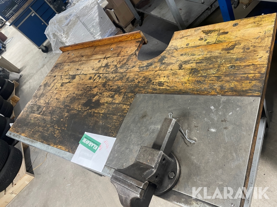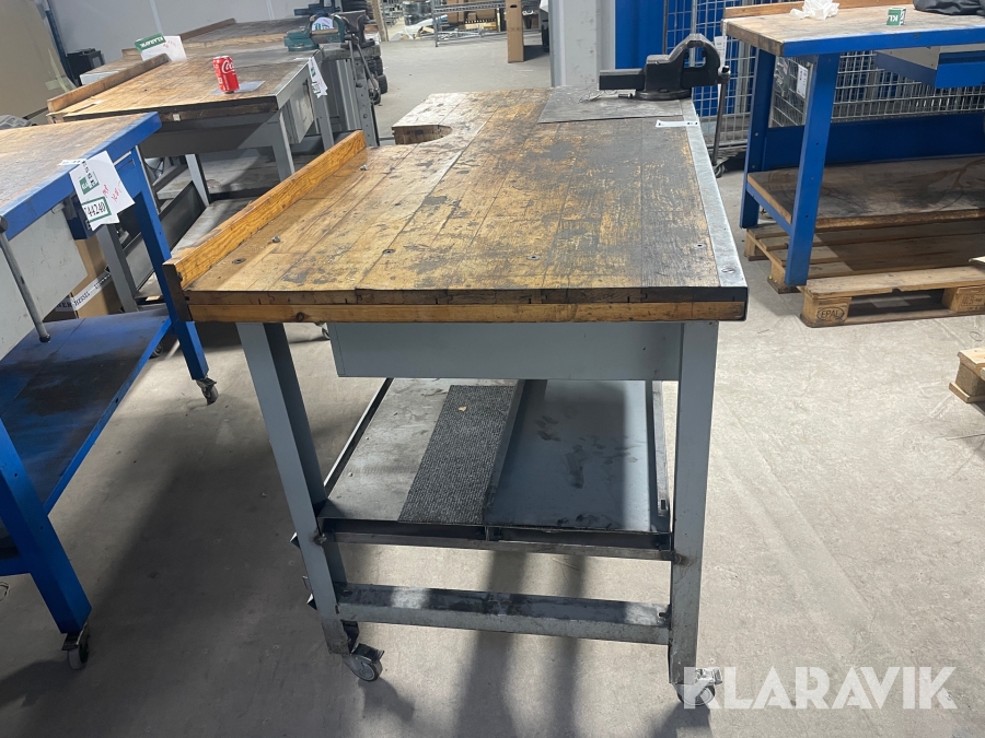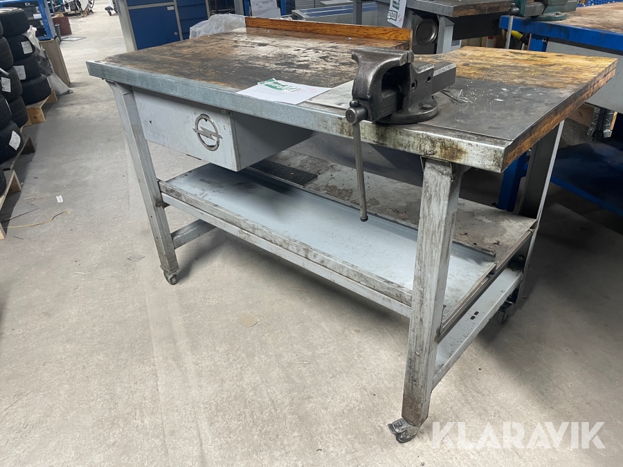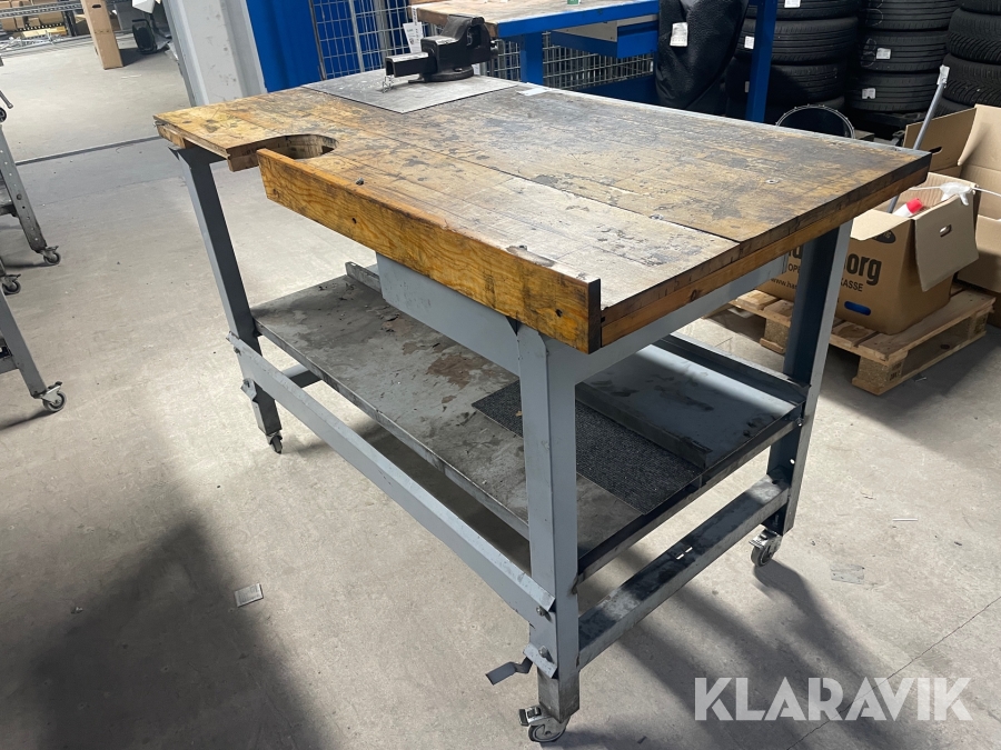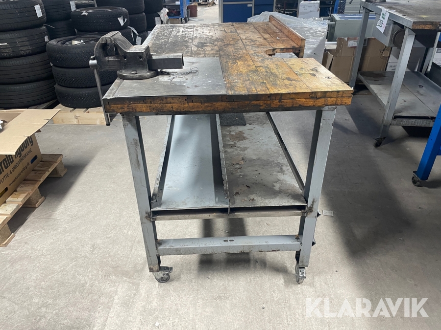 Arbejdsbord på hjul med skruestik