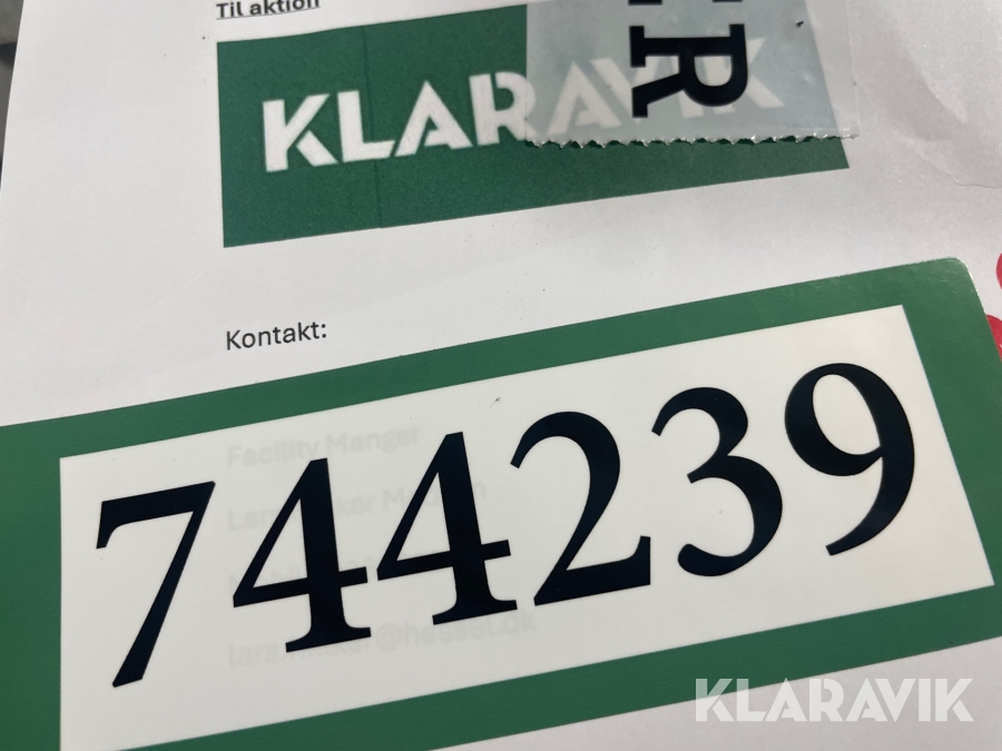 Som køber skal du kontrollere objektet ved afhentning Herefter kan der ikke gøres indvendinger. Hvis objektet adskiller sig væsentligt fra beskrivelsen, skal Klaravik kontaktes inden objektet fragtes (bemærk, at der gælder særskilte vilkår for konkursauktioner). Alle objekt findes hos den sælgende virksomhed, og du som køber har ansvar for afhentning og fragt. Som køber har du 15 dage til at afhente objektet, efter auktionen er afsluttet.