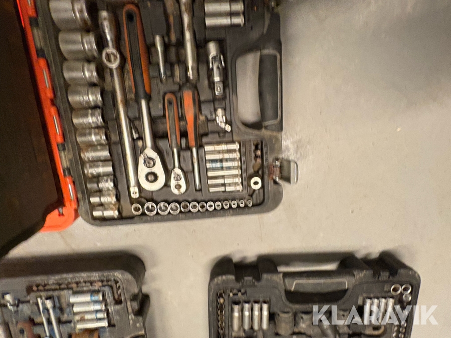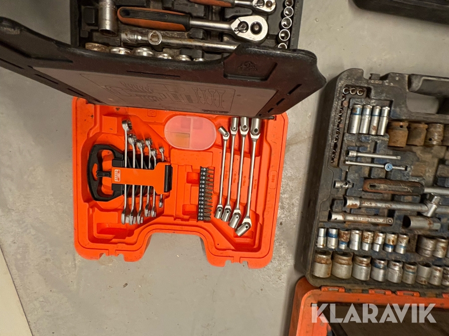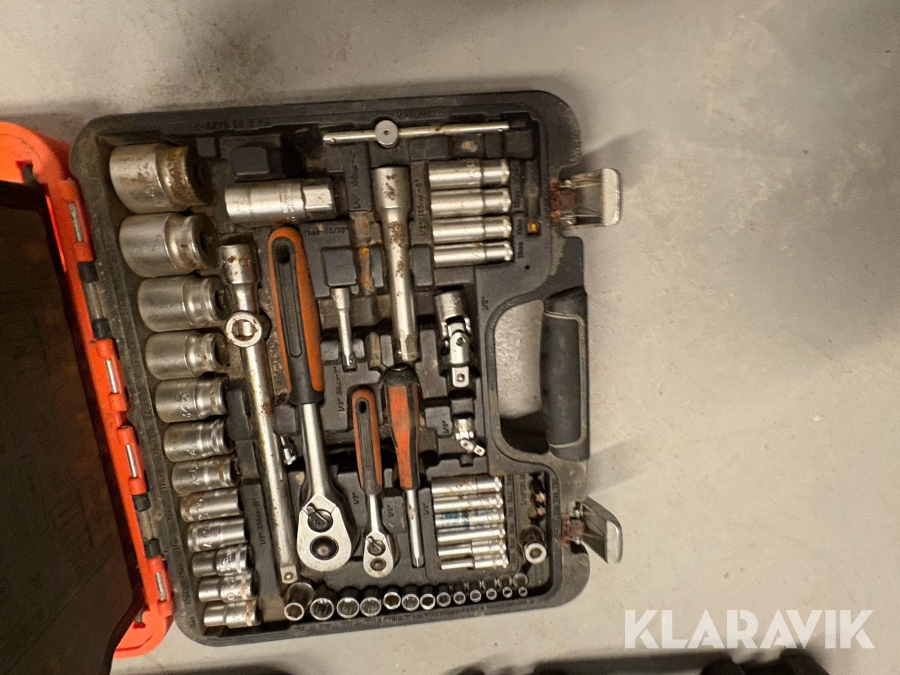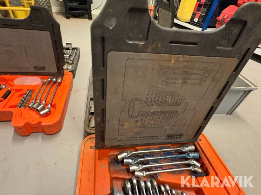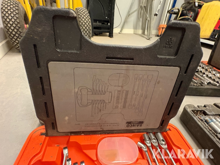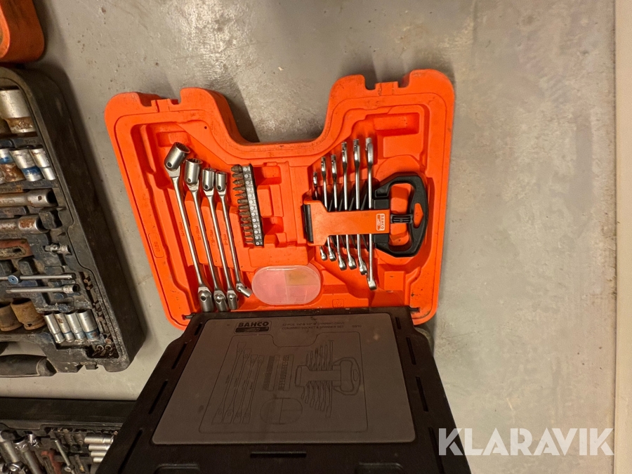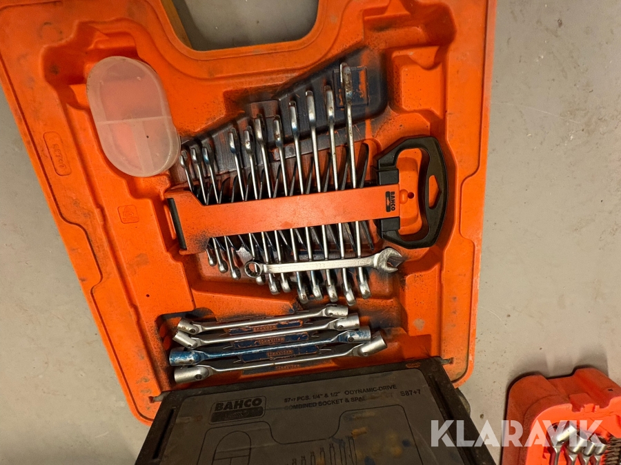 Værktøjsparti Bahco med topnøglesæt fastnøglesæt og løse toppe flere kufferter