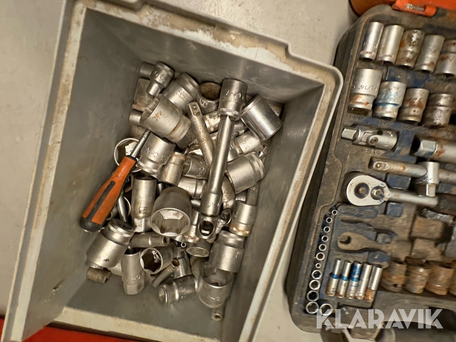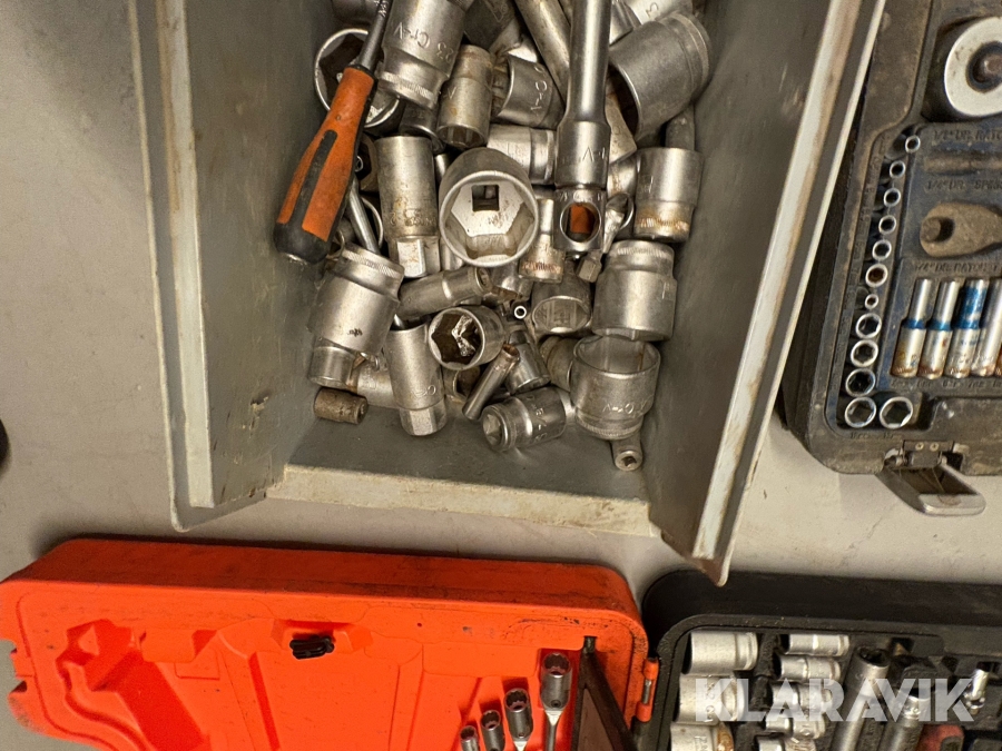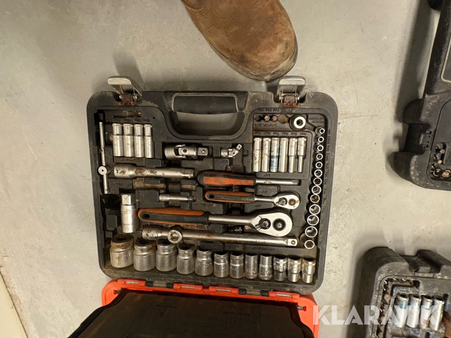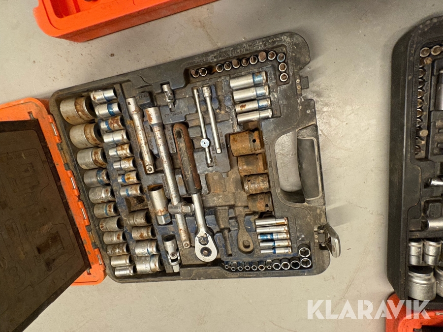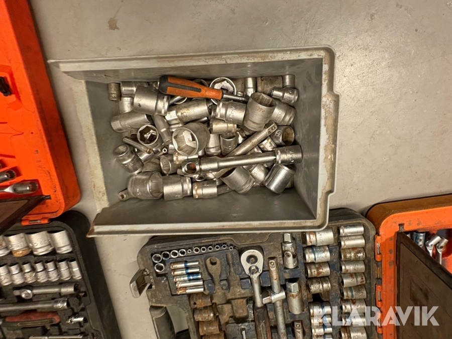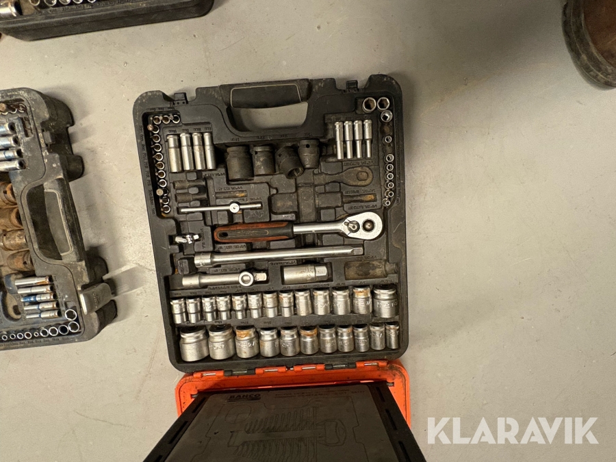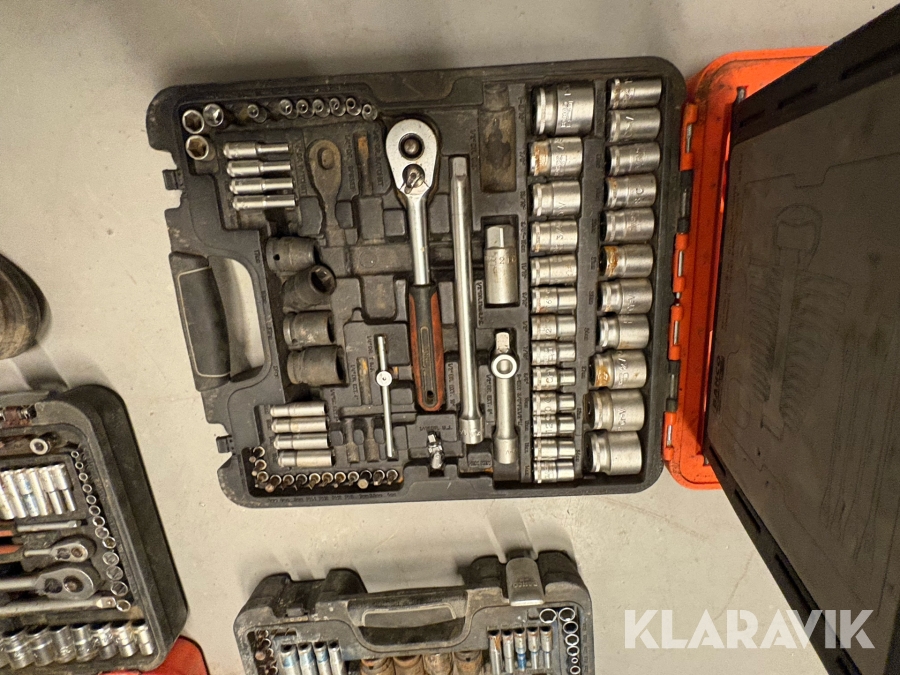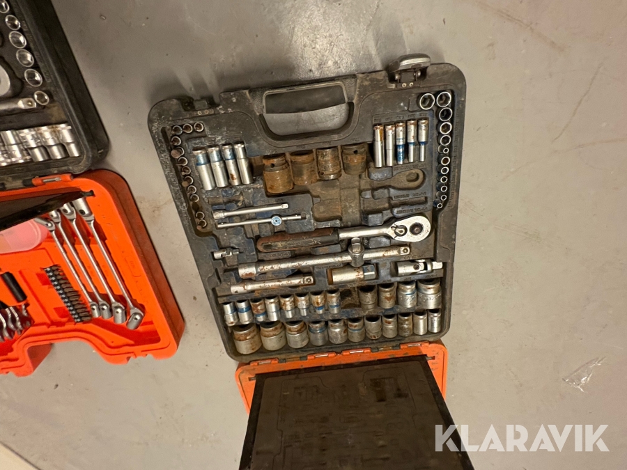 Værktøjsparti Bahco med topnøglesæt fastnøglesæt og løse toppe flere kufferter