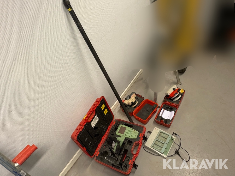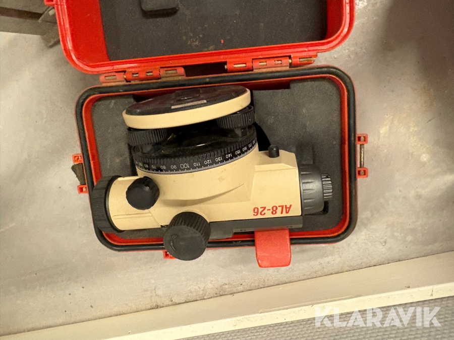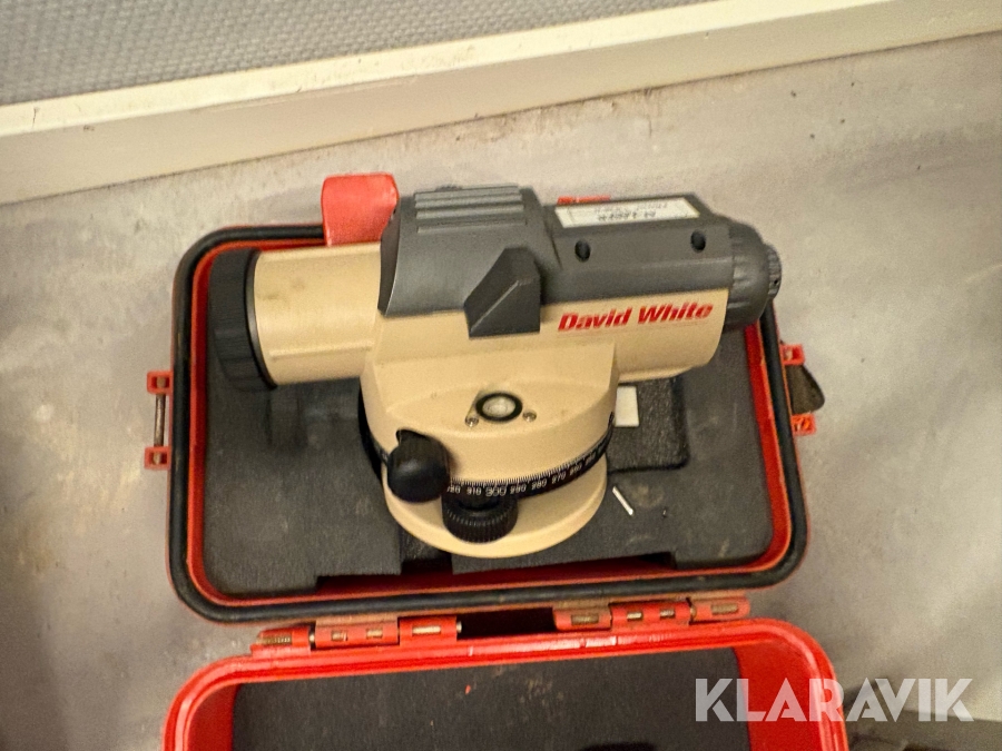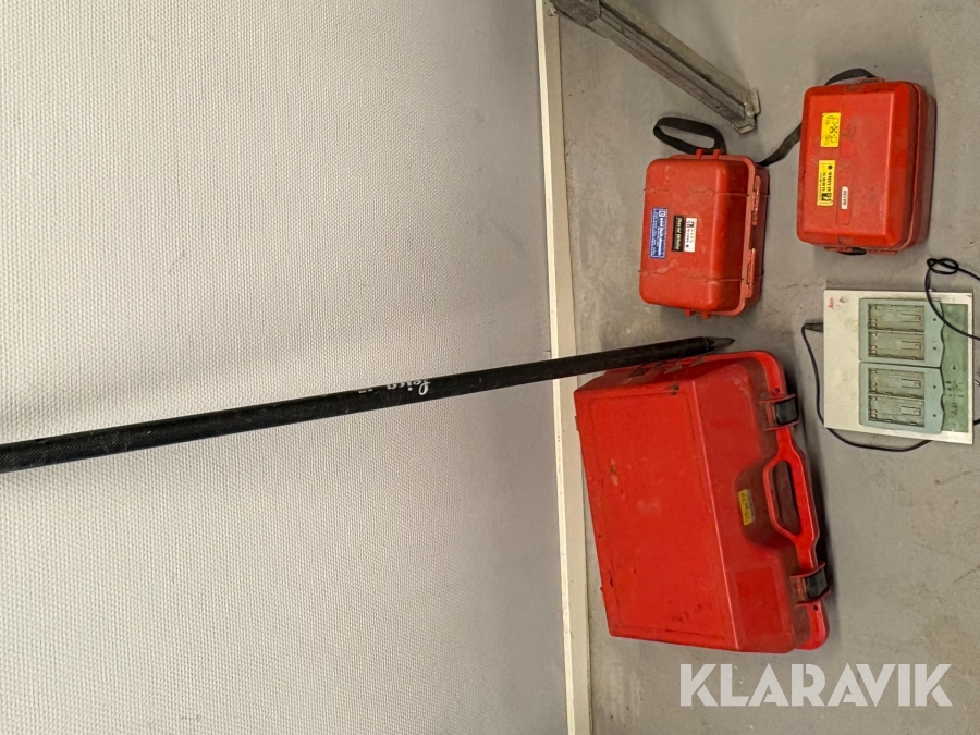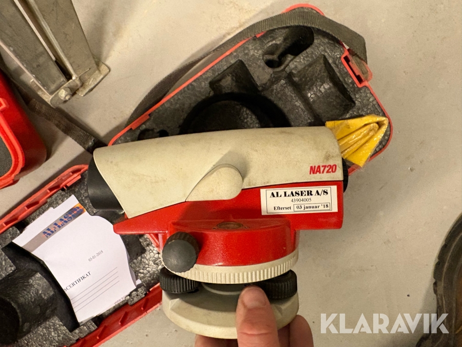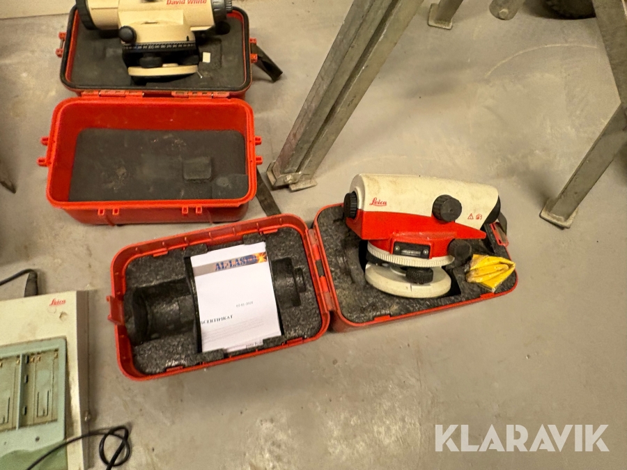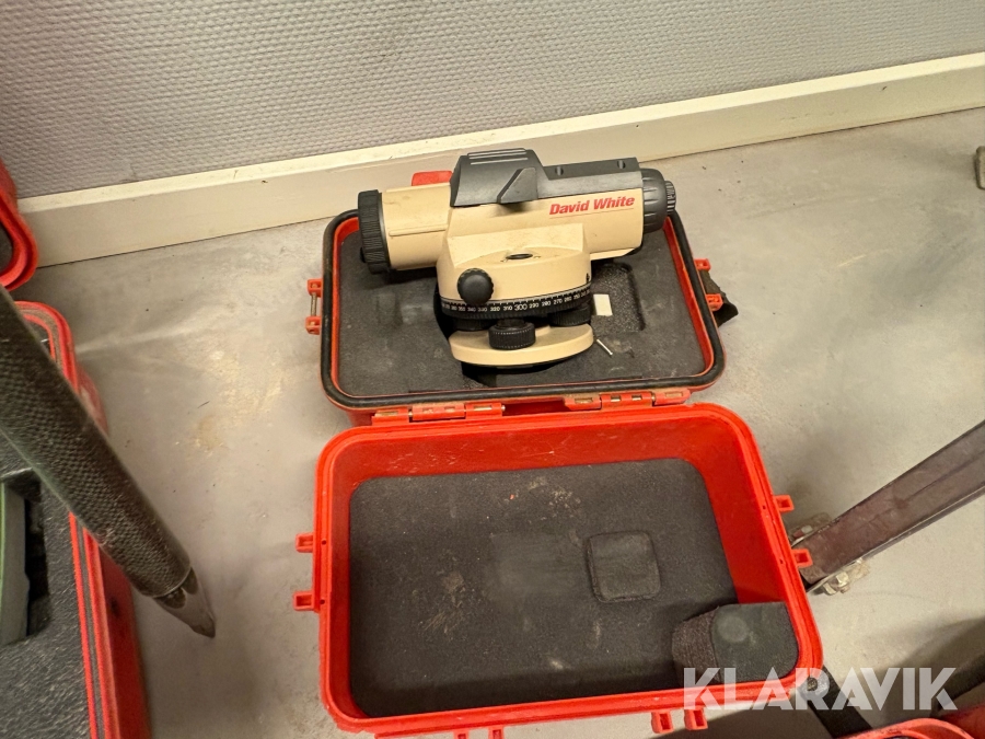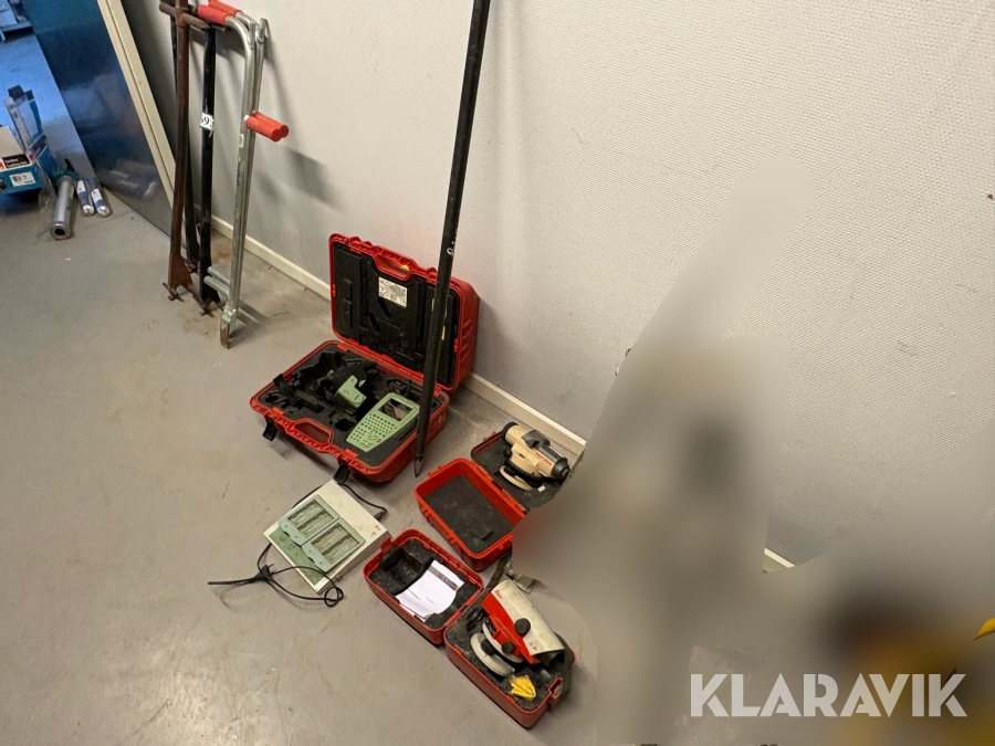 Landmåler- og laserudstyr samlet parti med digitalt nivellerinstrument, optiske nivellerinstrumenter og laserudstyr