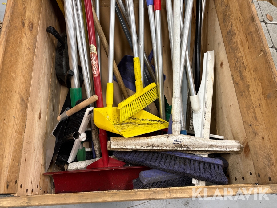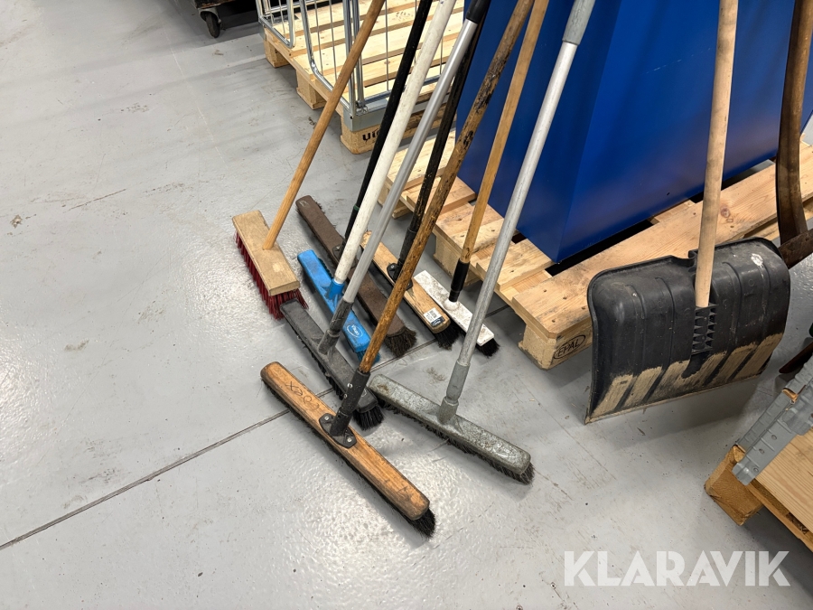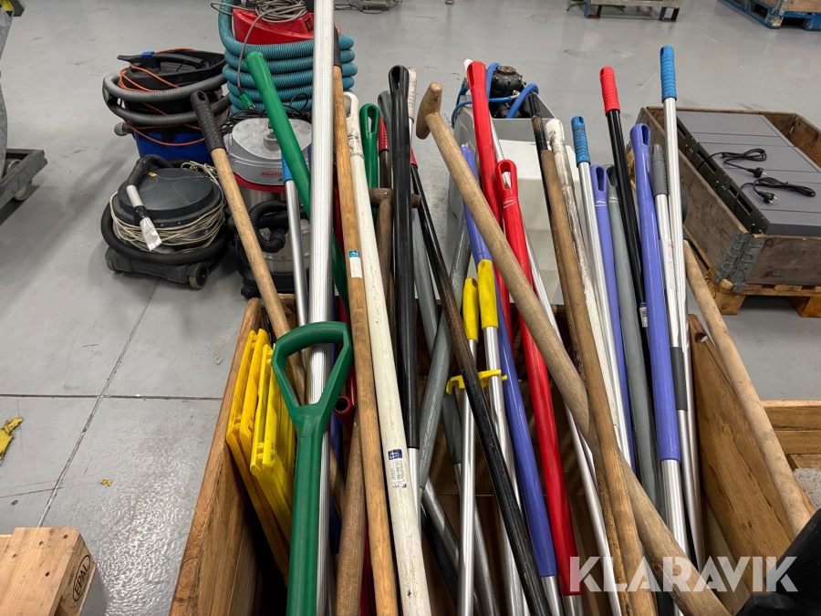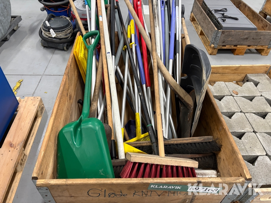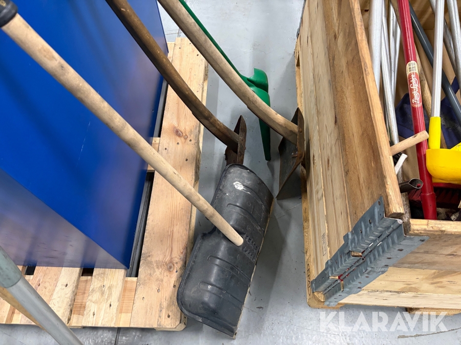 Lot med have-/rengøringsredskaber og sten - 2 paller