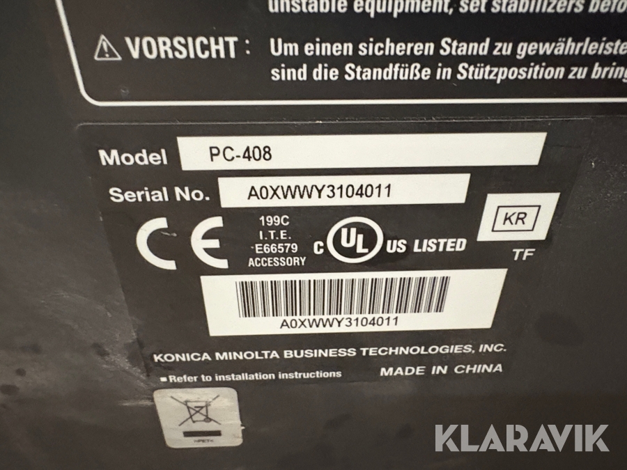 Som køber skal du kontrollere objektet ved afhentning Herefter kan der ikke gøres indvendinger. Hvis objektet adskiller sig væsentligt fra beskrivelsen, skal Klaravik kontaktes inden objektet fragtes (bemærk, at der gælder særskilte vilkår for konkursauktioner). Alle objekt findes hos den sælgende virksomhed, og du som køber har ansvar for afhentning og fragt. Som køber har du 15 dage til at afhente objektet, efter auktionen er afsluttet.