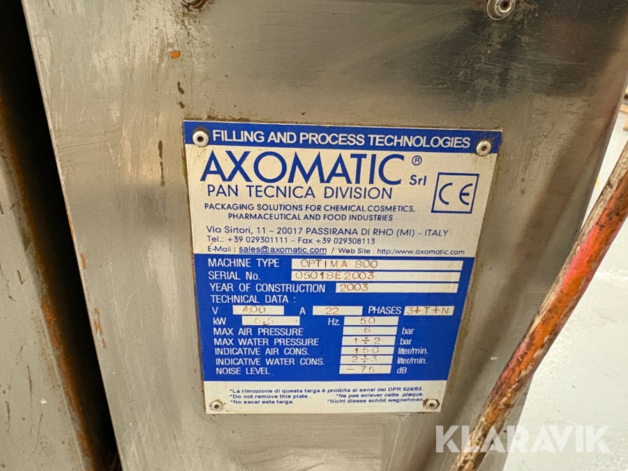 Fylde- og Pakkemaskine Axomatic Optima 800