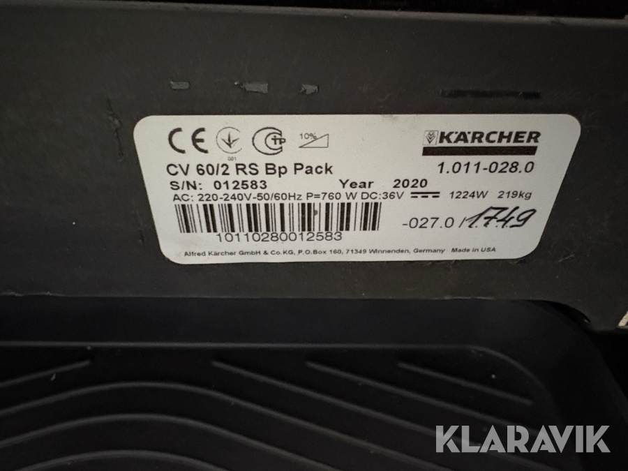 Som køber skal du kontrollere objektet ved afhentning Herefter kan der ikke gøres indvendinger. Hvis objektet adskiller sig væsentligt fra beskrivelsen, skal Klaravik kontaktes inden objektet fragtes (bemærk, at der gælder særskilte vilkår for konkursauktioner). Alle objekt findes hos den sælgende virksomhed, og du som køber har ansvar for afhentning og fragt. Som køber har du 15 dage til at afhente objektet, efter auktionen er afsluttet.