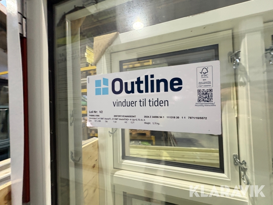 Dannebrogsvindue Outline 113.8x177.8 cm 3 lags - Træ - 1 styk