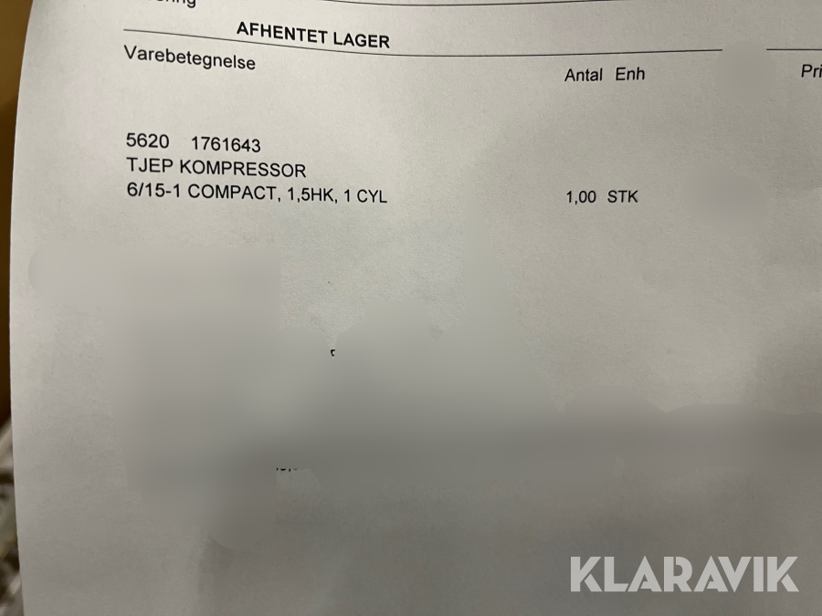 Som køber skal du kontrollere objektet ved afhentning Herefter kan der ikke gøres indvendinger. Hvis objektet adskiller sig væsentligt fra beskrivelsen, skal Klaravik kontaktes inden objektet fragtes (bemærk, at der gælder særskilte vilkår for konkursauktioner). Alle objekt findes hos den sælgende virksomhed, og du som køber har ansvar for afhentning og fragt. Som køber har du 15 dage til at afhente objektet, efter auktionen er afsluttet.