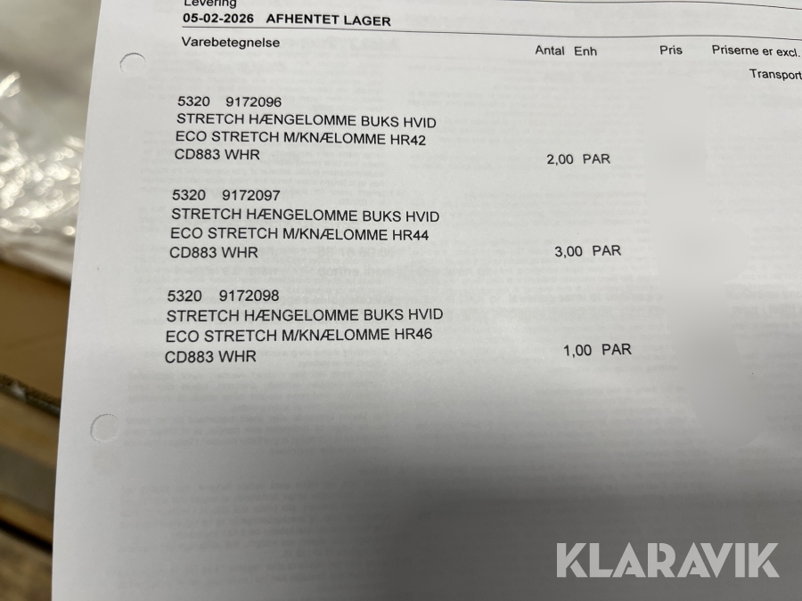 Varen forbliver hos sælgeren, indtil køberen har betalt for varen. Når betalingen er modtaget, får køberen adgang til sælgers kontaktoplysninger og kan aftale afhentning (inden for 15 dage efter auktionens afslutning). Har du spørgsmål om afhentning? Kontakt os på 7220 7035 eller send en e-mail til info@klaravik.dk