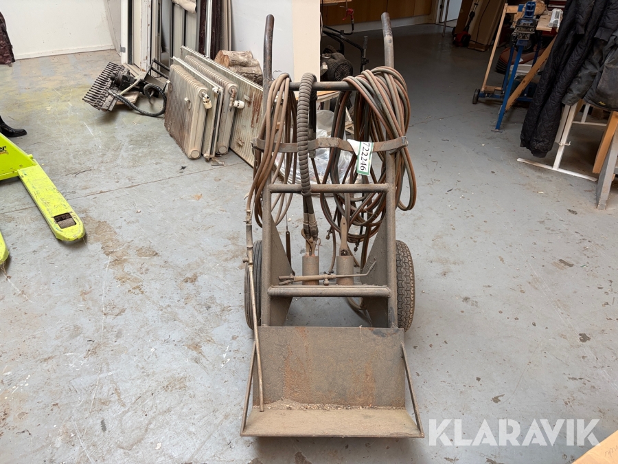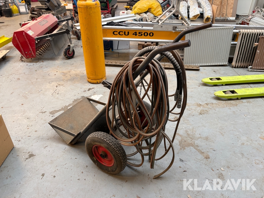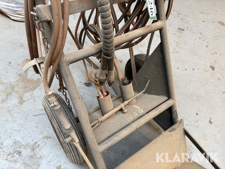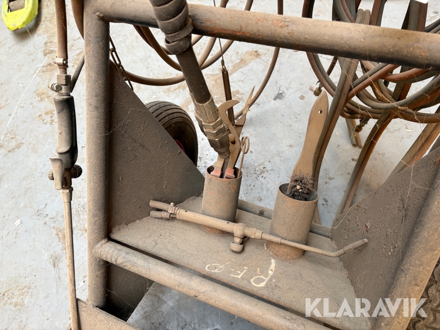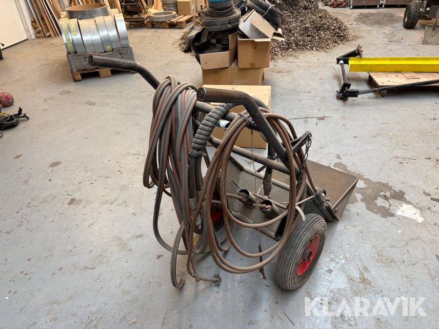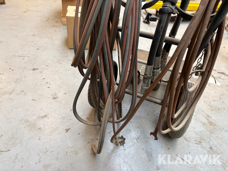 Vogn til skærebrænder med slanger til