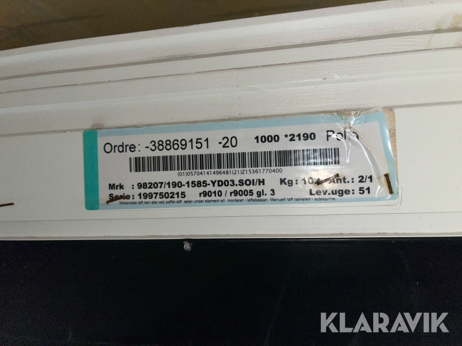 Som køber skal du kontrollere objektet ved afhentning Herefter kan der ikke gøres indvendinger. Hvis objektet adskiller sig væsentligt fra beskrivelsen, skal Klaravik kontaktes inden objektet fragtes (bemærk, at der gælder særskilte vilkår for konkursauktioner). Alle objekt findes hos den sælgende virksomhed, og du som køber har ansvar for afhentning og fragt. Som køber har du 15 dage til at afhente objektet, efter auktionen er afsluttet.