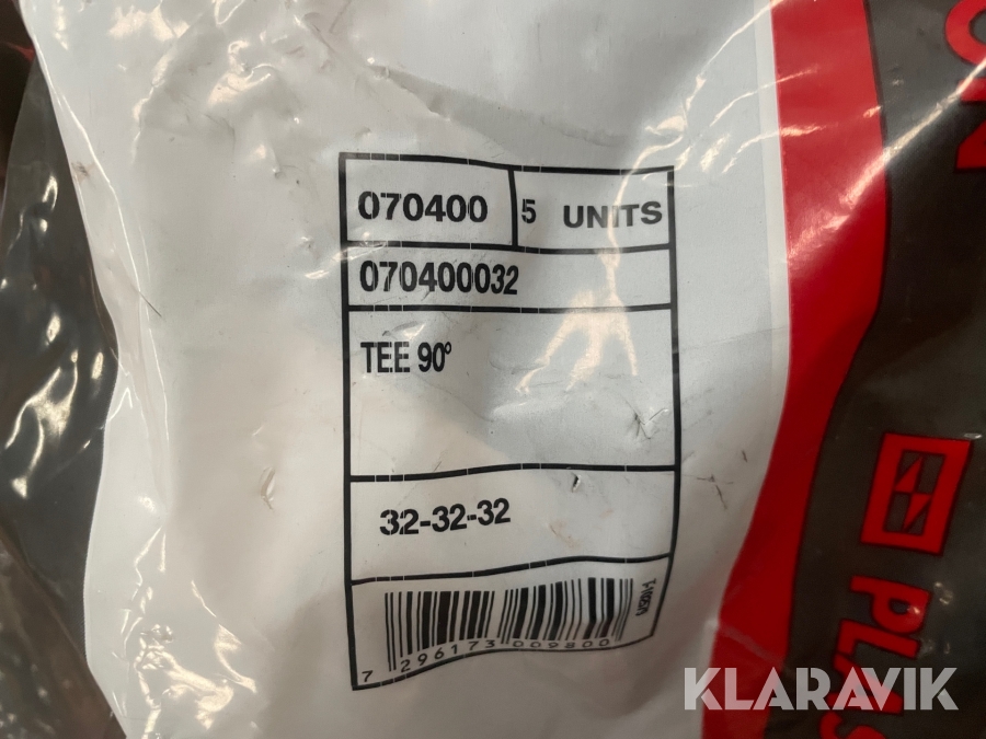 Klemmefitting T-stykke Plasson cirka 20 poser à 5 styk