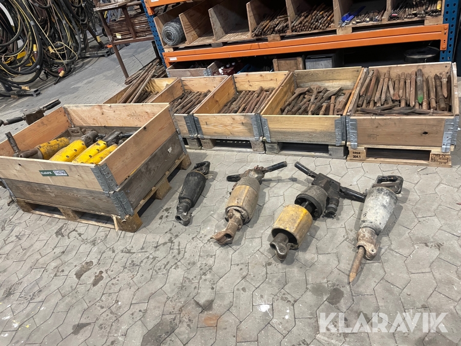 Stort Lot af tryklufthammere Atlas Copco med mejsler 15 styk