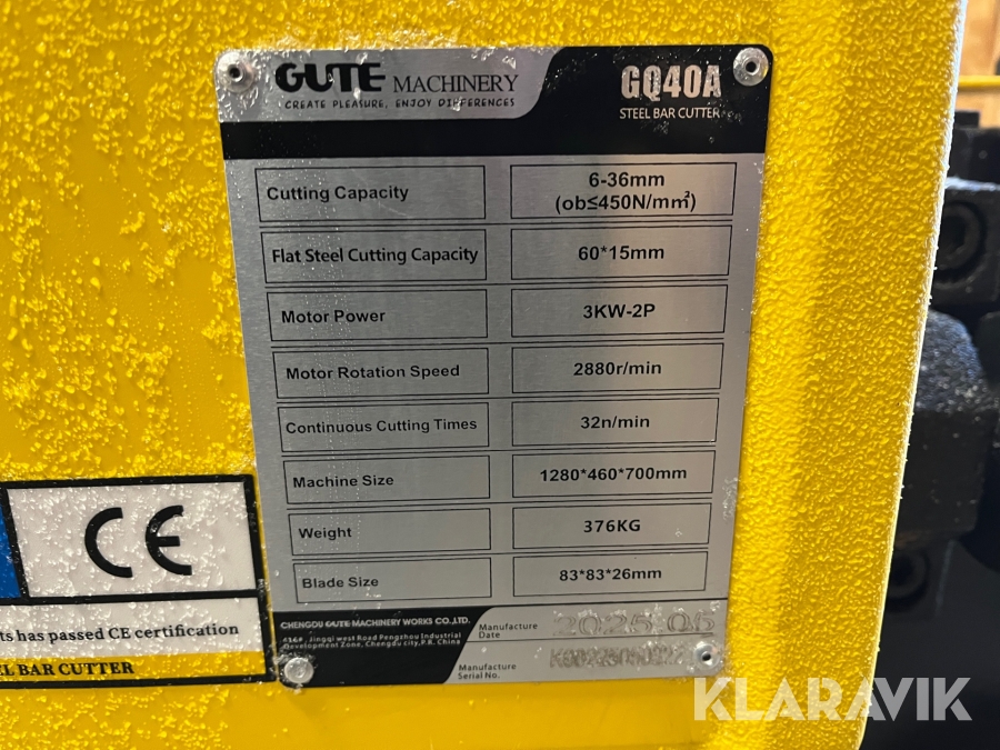 Armeringsjernsklipper Gute Machinery GQ40A