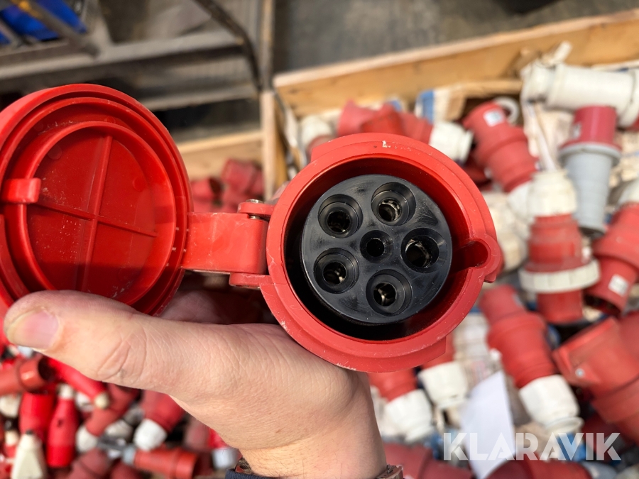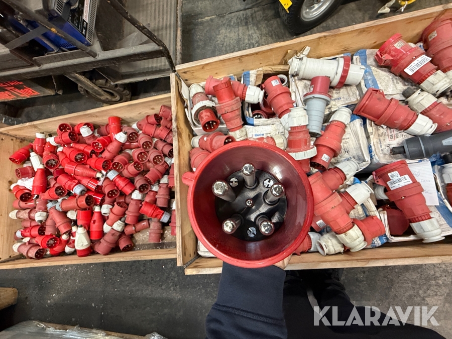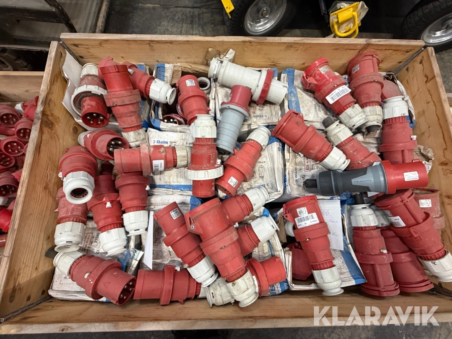 Nogle af stikkende er blevet klippet af på ledningen, så der sidder stadigvæk ledningsstumper i stikkene