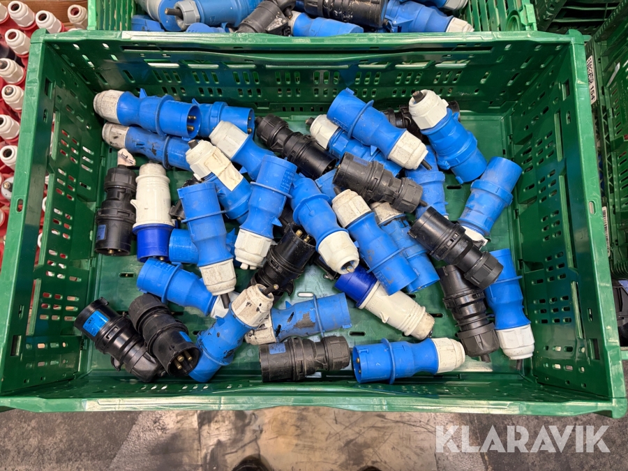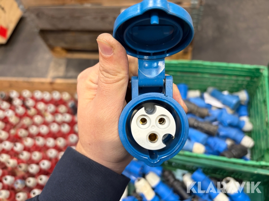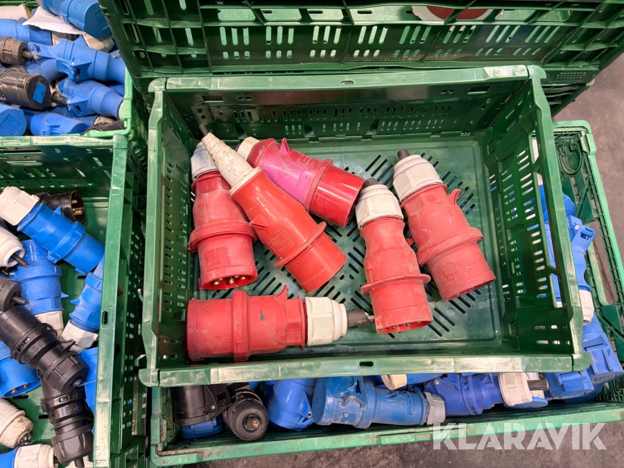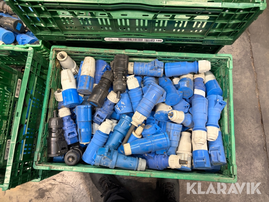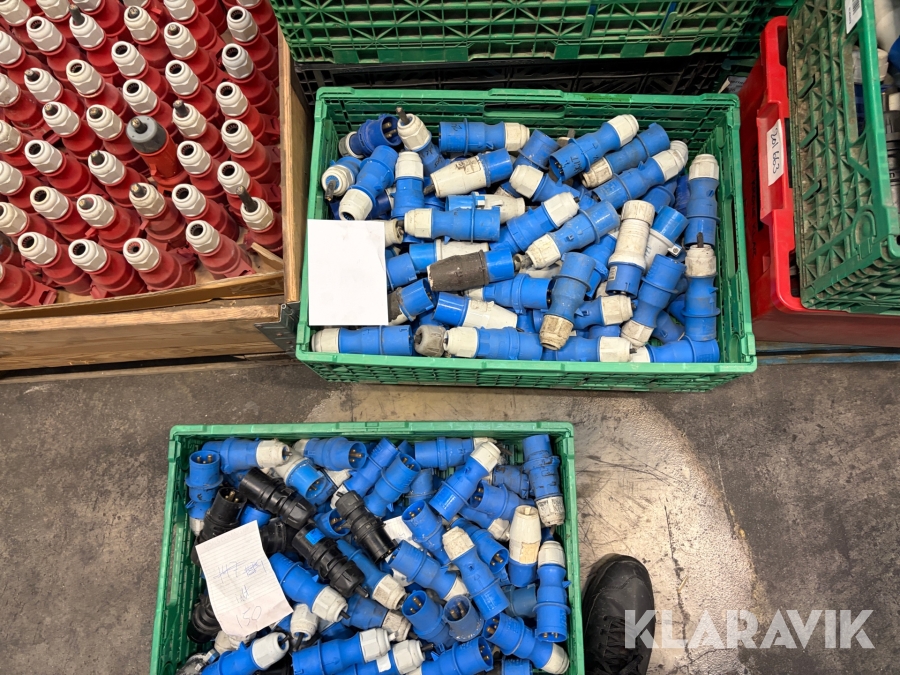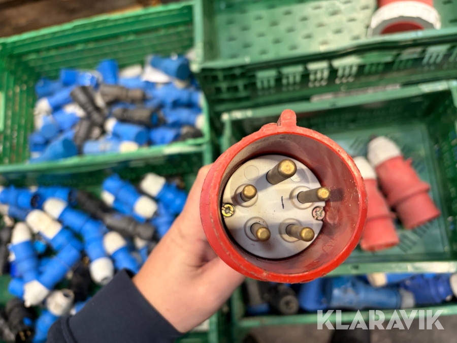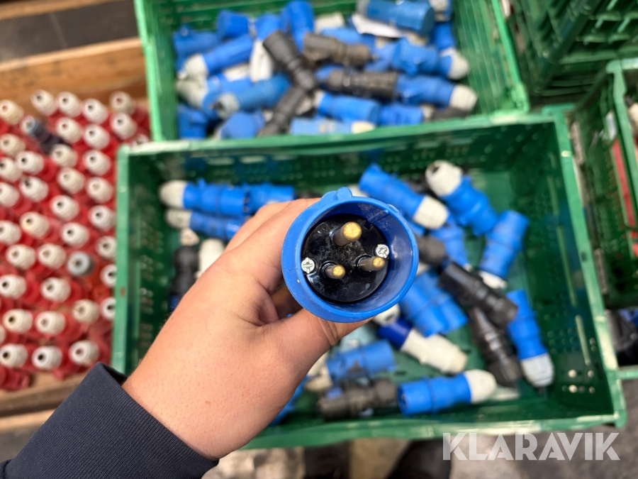 Nogle af stikkende er blevet klippet af på ledningen, så der sidder stadigvæk ledningsstumper i stikkene