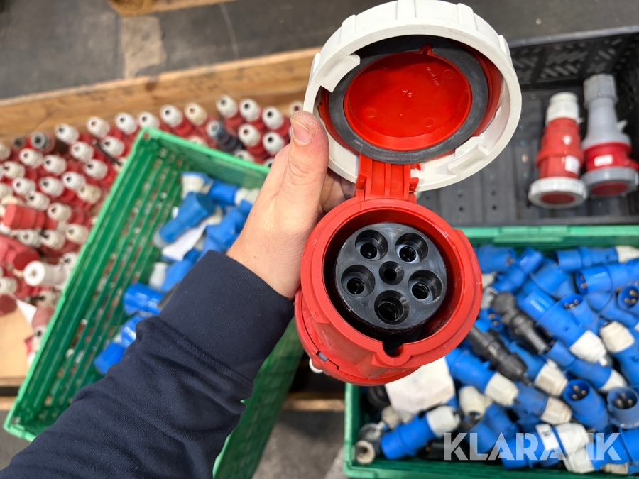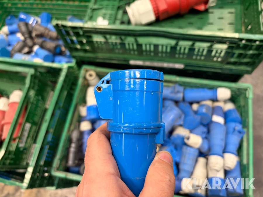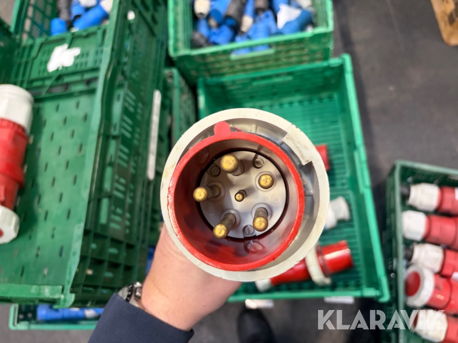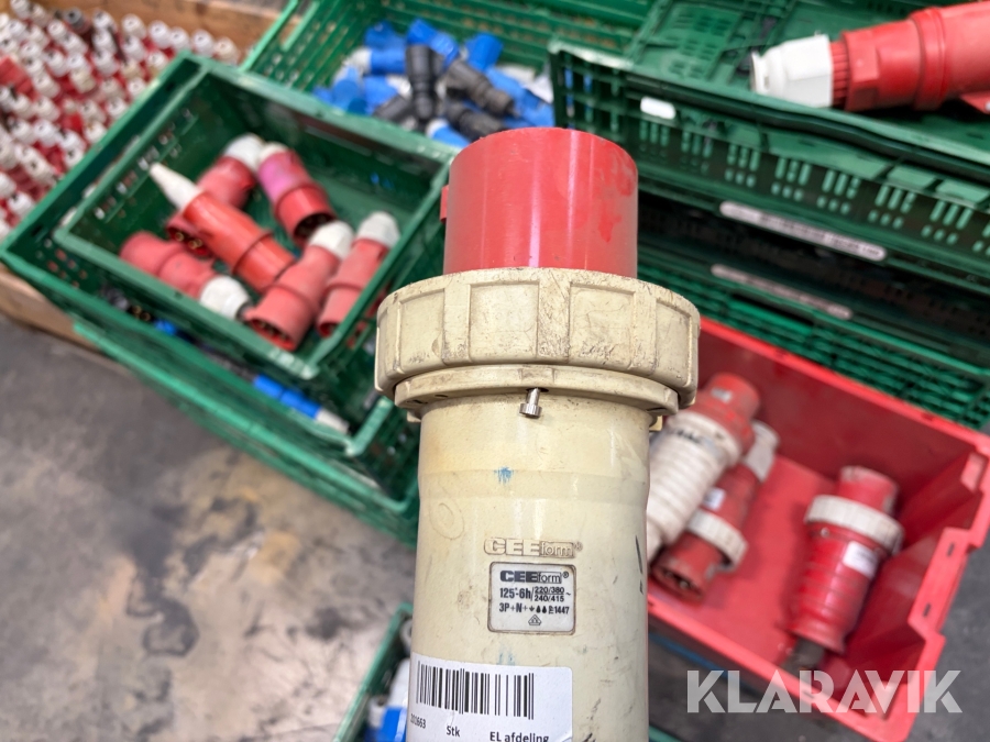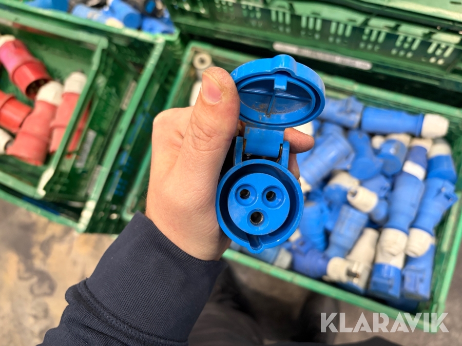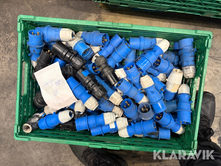 Nogle af stikkende er blevet klippet af på ledningen, så der sidder stadigvæk ledningsstumper i stikkene