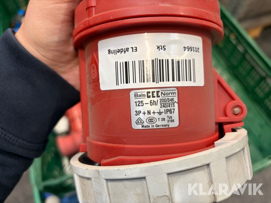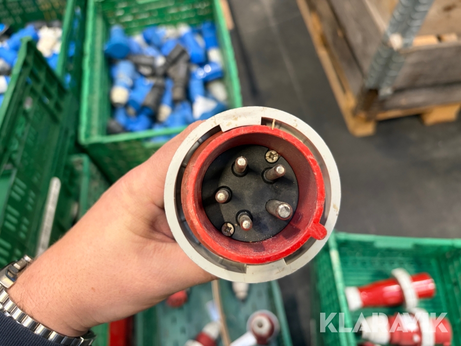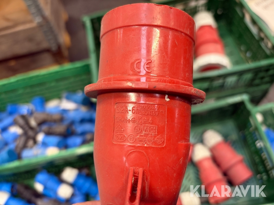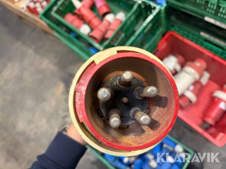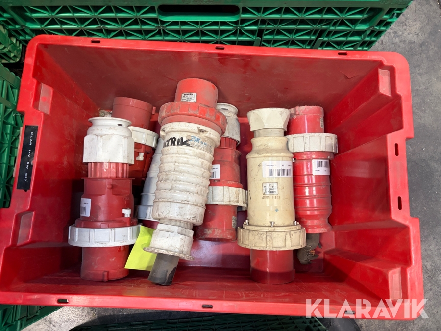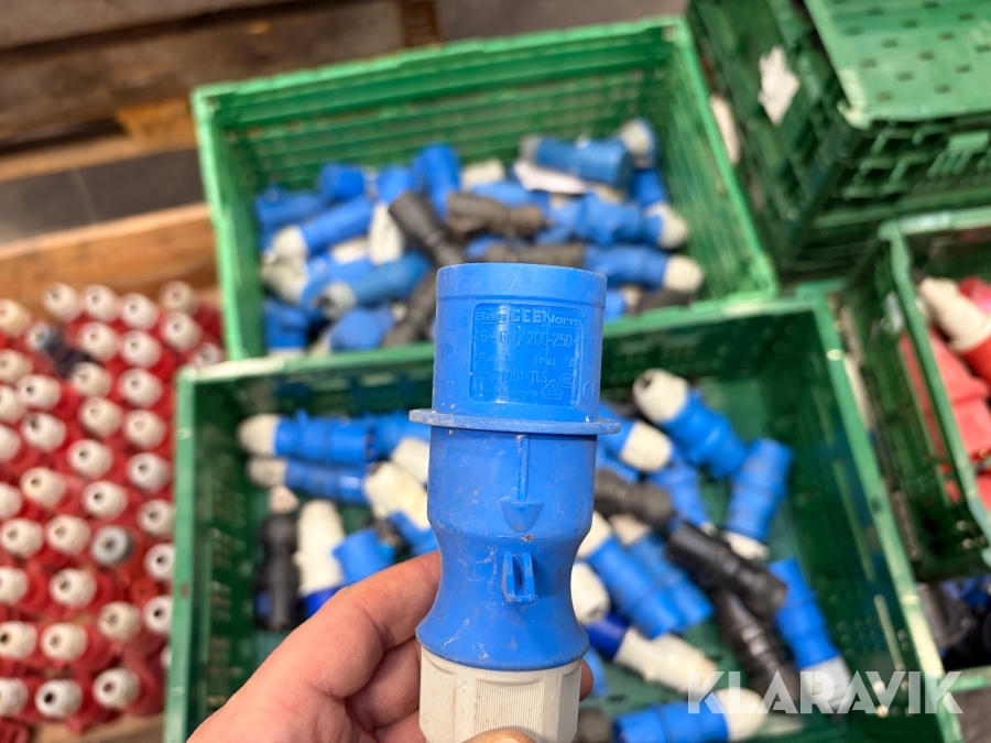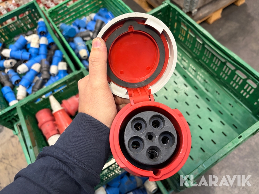 Nogle af stikkende er blevet klippet af på ledningen, så der sidder stadigvæk ledningsstumper i stikkene