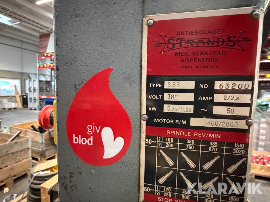 Kraftig og solid søjleboremaskine fra svenske Strands Mek. Verkstad, Rosenfors.