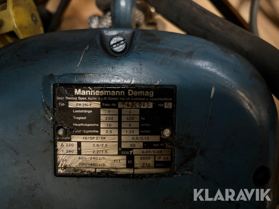 DEMAG Mannesmann el-kædetalje model PK2N-F.