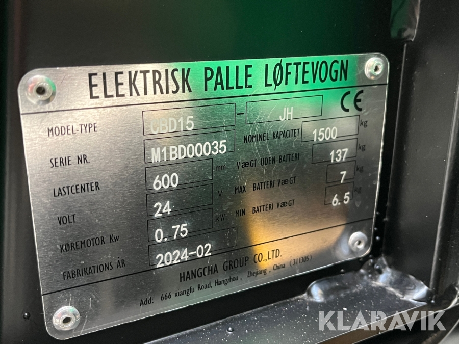 El-palleløfter Hangcha CBD15 - 1500kg