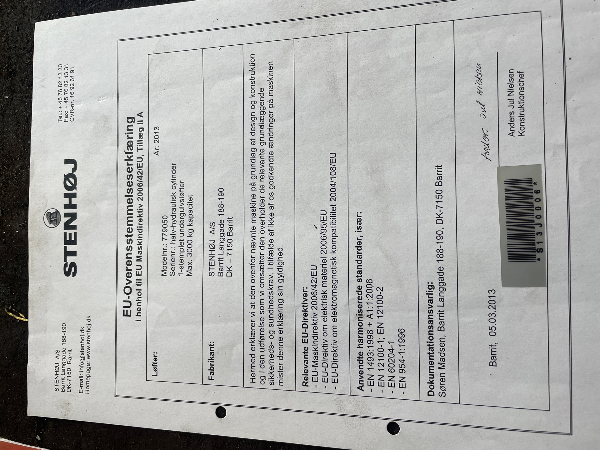 Ensøjlelift Stenhøj 3000kg