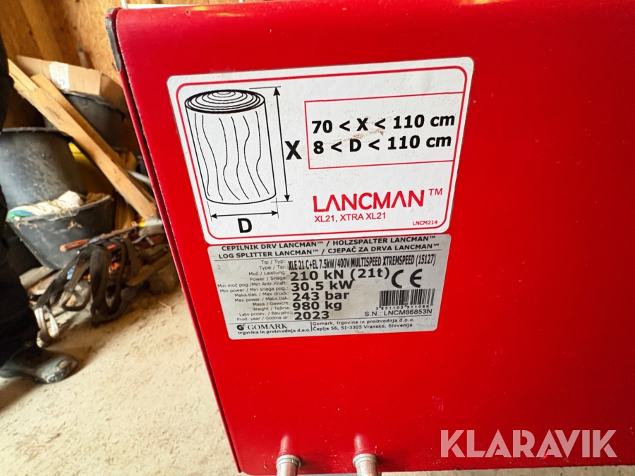 Brændeflækker Lancman XLE 21 C+EL 21 tons