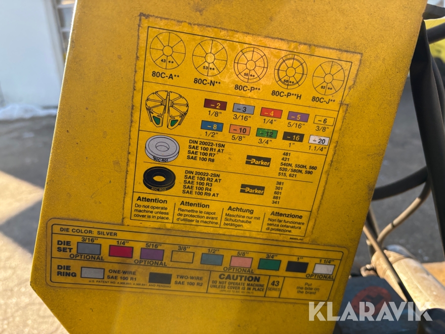 Hydraulikpresser Parker 82C 061 med fittings & matriser