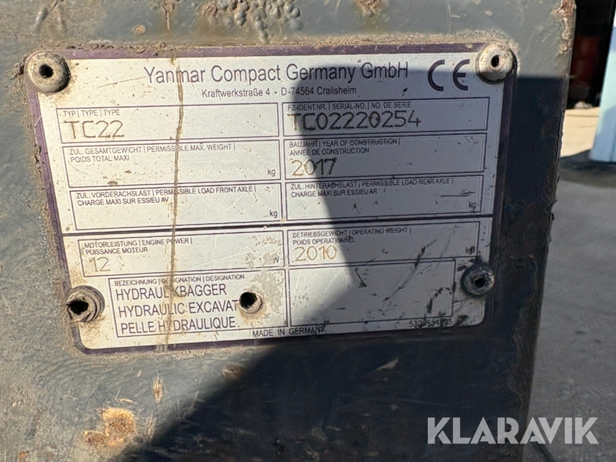 Gravemaskine Yanmar TC22.2 med 2 skovle