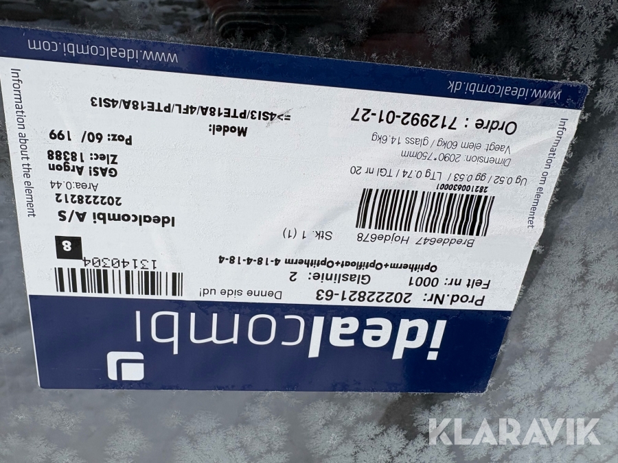 Som køber skal du kontrollere objektet ved afhentning Herefter kan der ikke gøres indvendinger. Hvis objektet adskiller sig væsentligt fra beskrivelsen, skal Klaravik kontaktes inden objektet fragtes (bemærk, at der gælder særskilte vilkår for konkursauktioner). Alle objekt findes hos den sælgende virksomhed, og du som køber har ansvar for afhentning og fragt. Som køber har du 15 dage til at afhente objektet, efter auktionen er afsluttet.