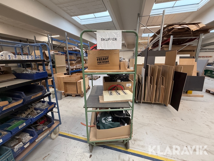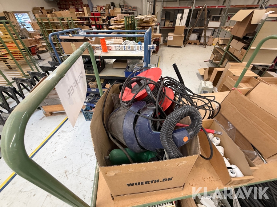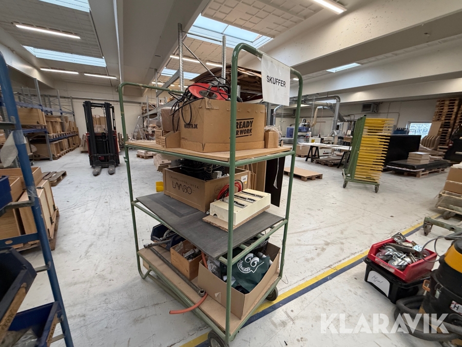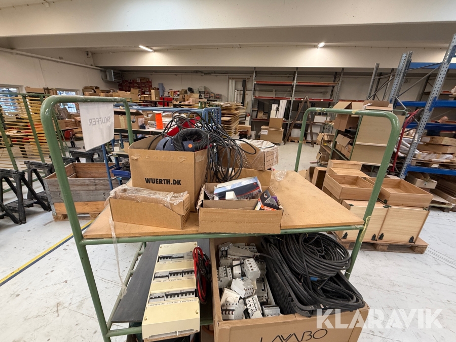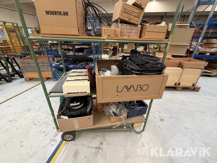 Diverse overskudsdele blandet lot på vogn