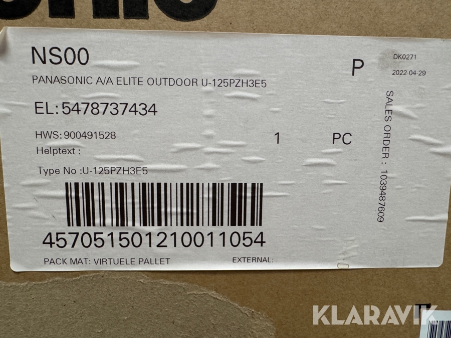 Varmepumpe Panasonic U-125PZH3E5 - S-1014PF3E Inde og ude