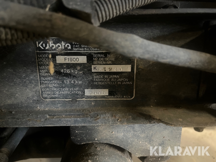 Græsslåmaskine Kubota F1900 Diesel 4x4