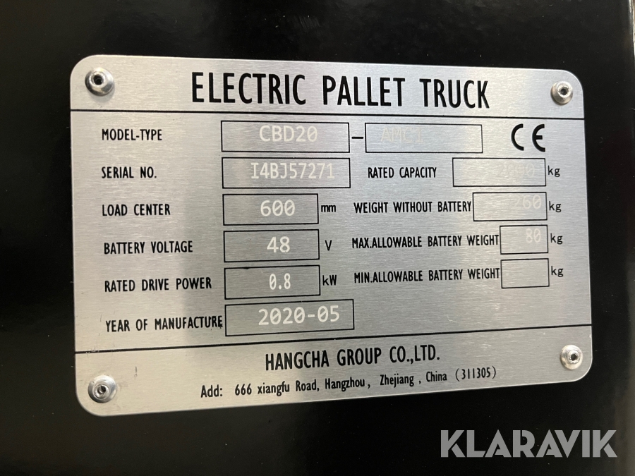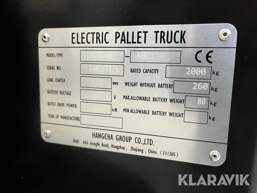 El-palleløfter Hangcha CBD20 - AMC1 - 2000kg