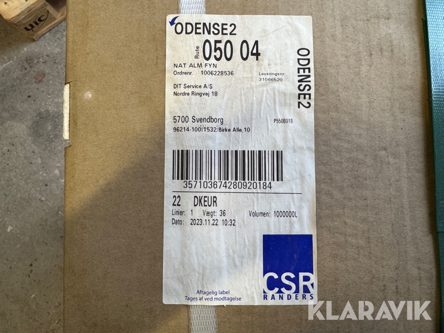 Som køber skal du kontrollere objektet ved afhentning Herefter kan der ikke gøres indvendinger. Hvis objektet adskiller sig væsentligt fra beskrivelsen, skal Klaravik kontaktes inden objektet fragtes (bemærk, at der gælder særskilte vilkår for konkursauktioner). Alle objekt findes hos den sælgende virksomhed, og du som køber har ansvar for afhentning og fragt. Som køber har du 15 dage til at afhente objektet, efter auktionen er afsluttet.
