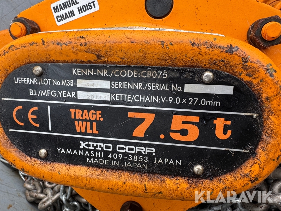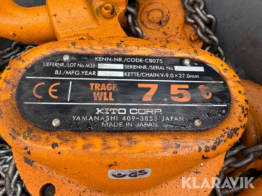 Kædetalje Kito Corp 7,5 tons 2 styk