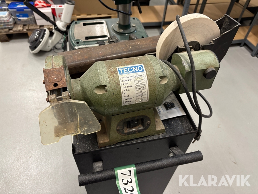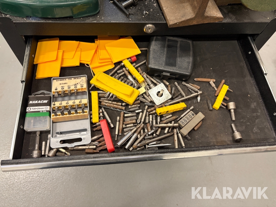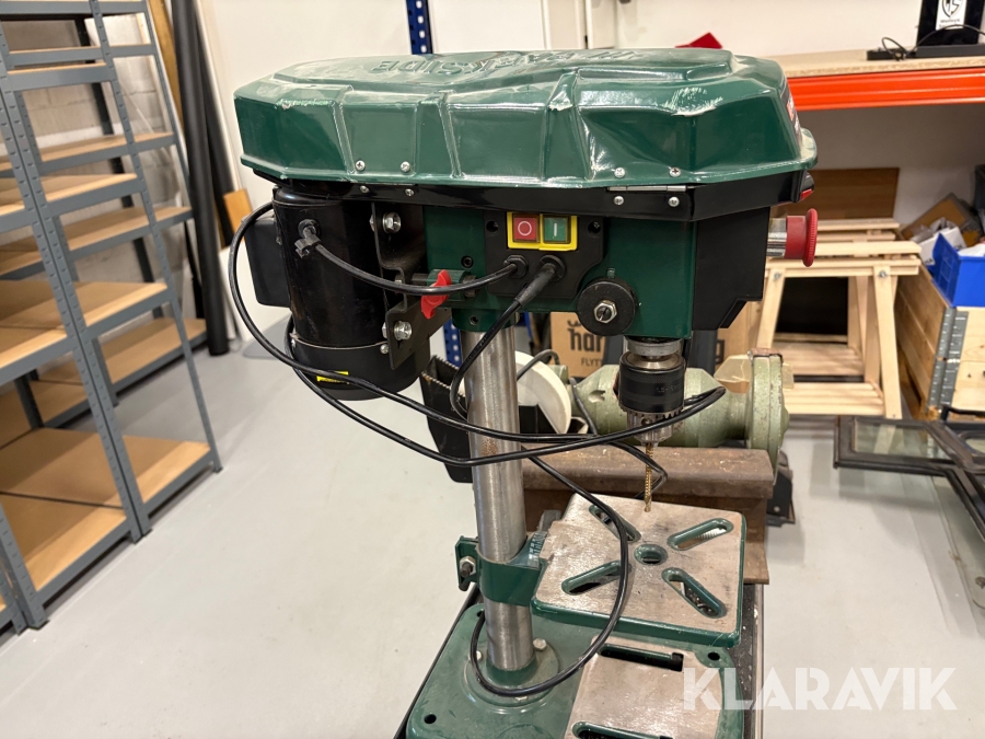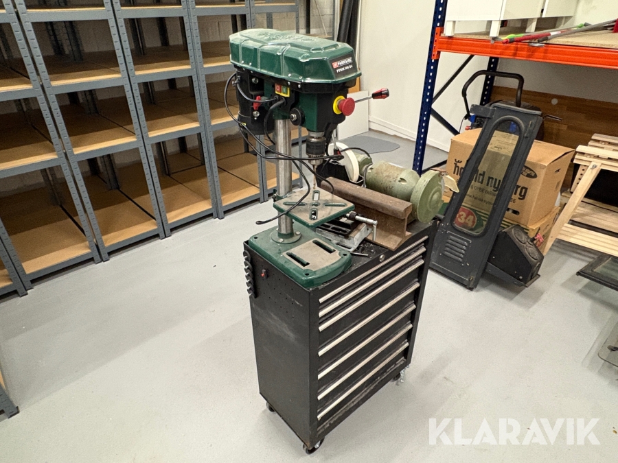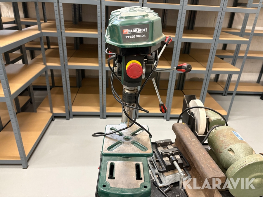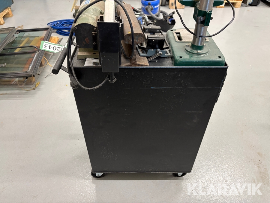 Værktøjsbord med søjleboremaskine og slibemaskine