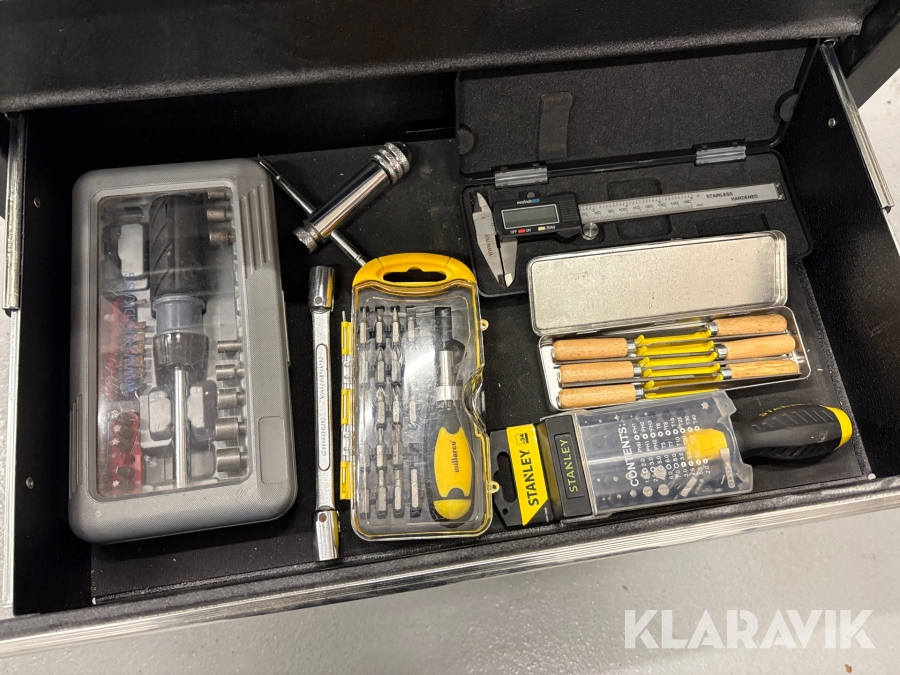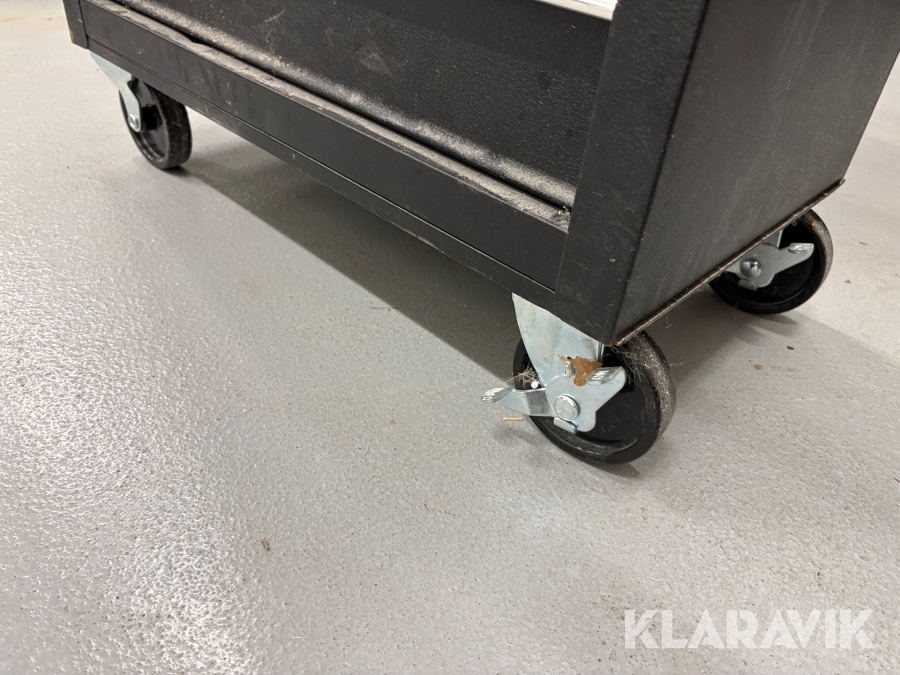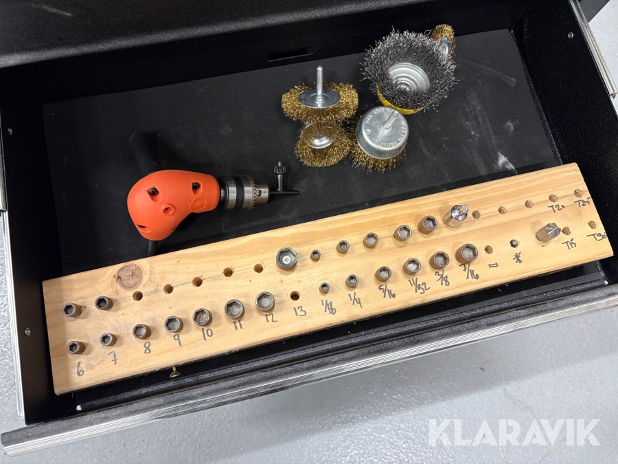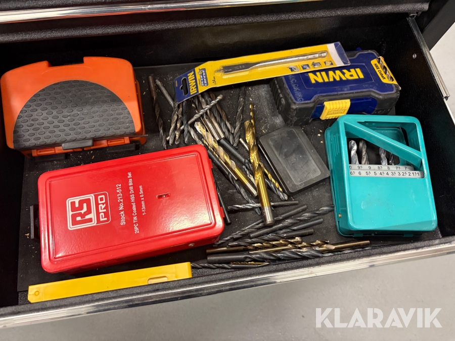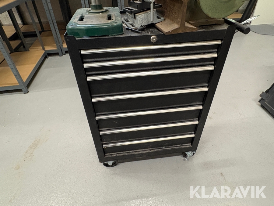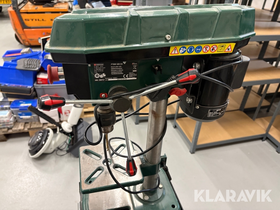 Værktøjsbord med søjleboremaskine og slibemaskine