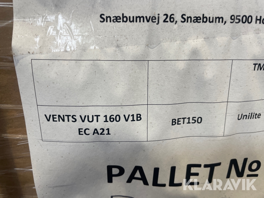 Ventilationsanlæg Vents vut 160v1b ec a21 3 styk