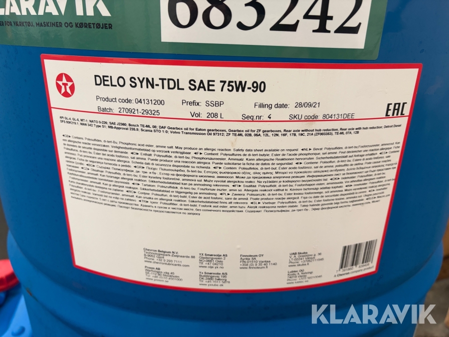 Gearolie Delo SEA 75W-90 268 liter