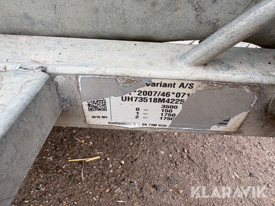 Maskintrailer Variant 3518m4 3500 kg. 2-akslet
