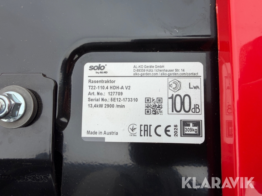 Havetraktor Solo by Al-ko Premium T22 110.4 HDH-A V2 Højgræsklipper