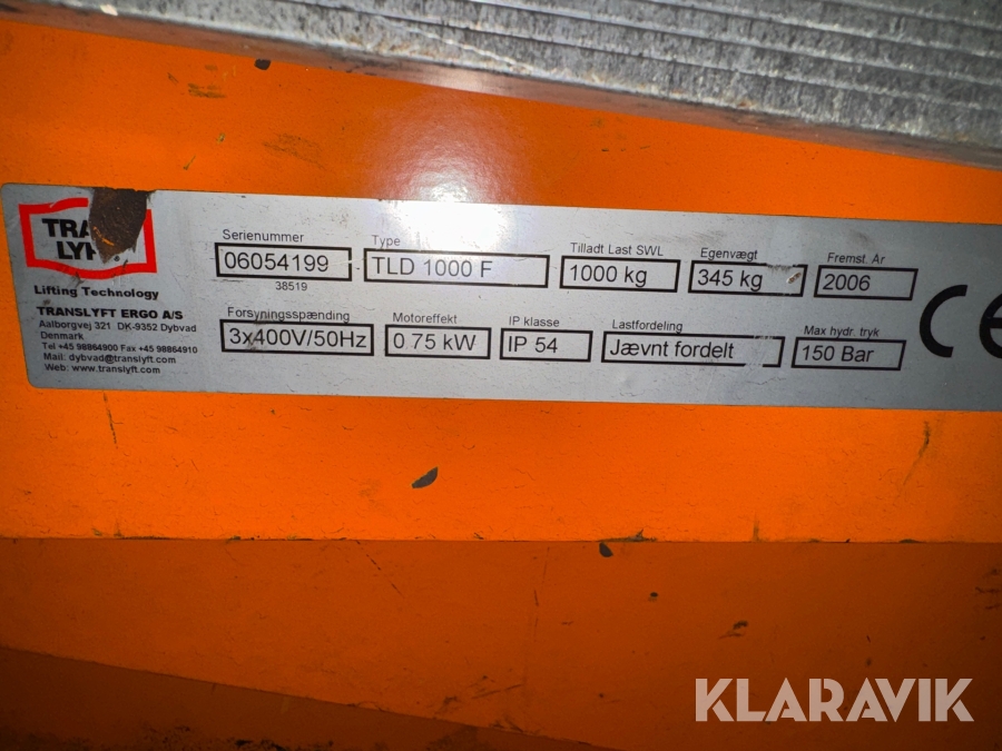 Hæve-sænkebord Trans Lyft TLD 1000 F max 1000 kg