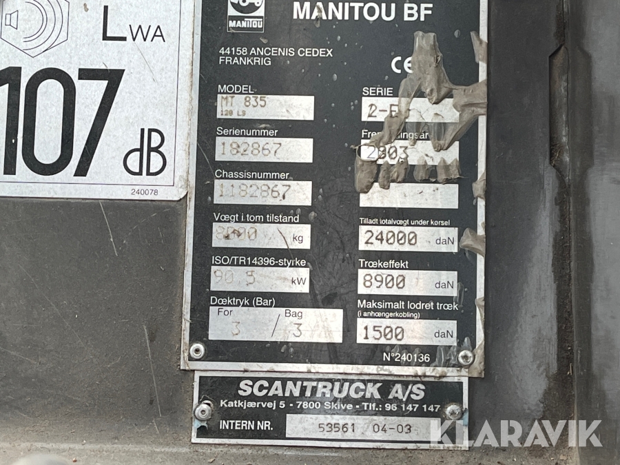 Teleskoplæsser Manitou MT 835-120 LS med skovl og gafler