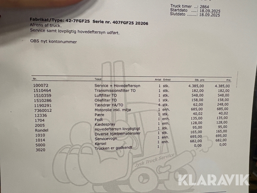 Som køber skal du kontrollere objektet ved afhentning Herefter kan der ikke gøres indvendinger. Hvis objektet adskiller sig væsentligt fra beskrivelsen, skal Klaravik kontaktes inden objektet fragtes (bemærk, at der gælder særskilte vilkår for konkursauktioner). Alle objekt findes hos den sælgende virksomhed, og du som køber har ansvar for afhentning og fragt. Som køber har du 12 dage til at afhente objektet, efter auktionen er afsluttet.