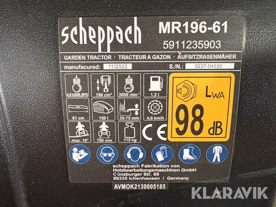 Græsslåmaskine Scheppach MT196-61