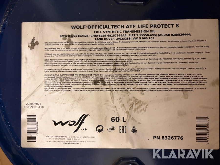 Fuldsyntetisk automatgearolie Wolf ATF Life Protect 8 transmissionsolie