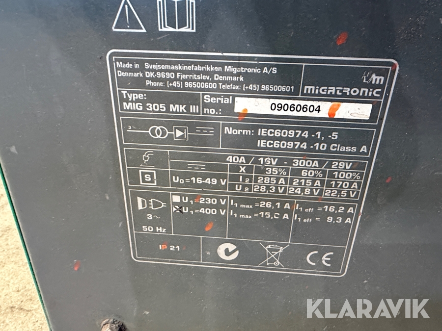 Svejsemaskine Migatronic MIG 305 MK III 1 styk