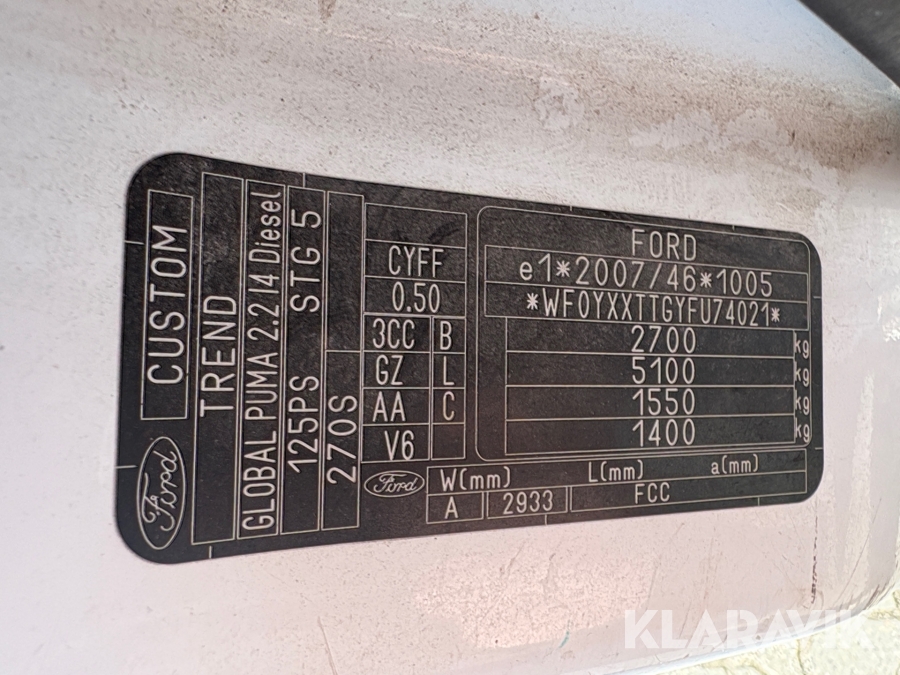 Varebil Ford Transit Custom 2.2 Tdci (125 Hk) 270 L1 Van Forhjulstræk Manuel