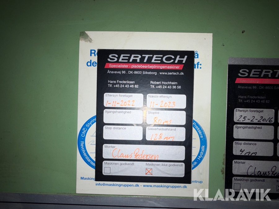 Som køber skal du kontrollere objektet ved afhentning Herefter kan der ikke gøres indvendinger. Hvis objektet adskiller sig væsentligt fra beskrivelsen, skal Klaravik kontaktes inden objektet fragtes (bemærk, at der gælder særskilte vilkår for konkursauktioner). Alle objekt findes hos den sælgende virksomhed, og du som køber har ansvar for afhentning og fragt. Som køber har du 12 dage til at afhente objektet, efter auktionen er afsluttet.