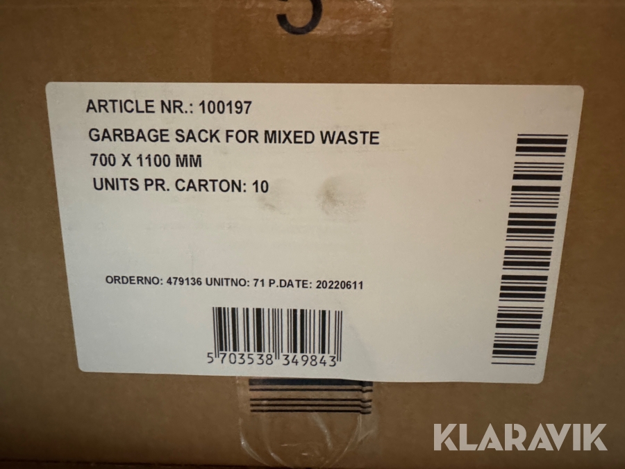 Som køber skal du kontrollere objektet ved afhentning Herefter kan der ikke gøres indvendinger. Hvis objektet adskiller sig væsentligt fra beskrivelsen, skal Klaravik kontaktes inden objektet fragtes (bemærk, at der gælder særskilte vilkår for konkursauktioner). Alle objekt findes hos den sælgende virksomhed, og du som køber har ansvar for afhentning og fragt. Som køber har du 12 dage til at afhente objektet, efter auktionen er afsluttet.
